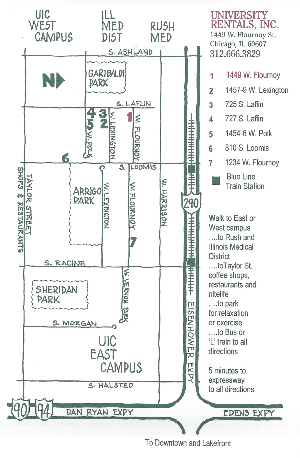 All of the University Rentals, Inc. apartment buildings are conveniently located in the center of several campuses and a variety of shops, restaurants and entertainment. Within walking distance to the train and just a few-minute drive to downtown and the lakefront, the location gives you everything you need and the lifestyle you want.